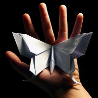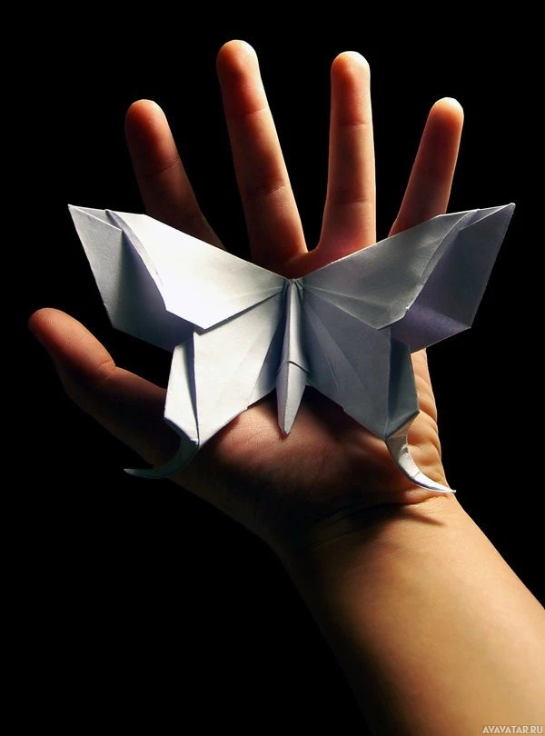 На снимке изображена рука, держащая двух бабочек-оригами. Эти бумажные творения обычно связаны с японским искусством оригами, где бумага складывается для создания объектов, таких как это тонкое изображение бабочки.