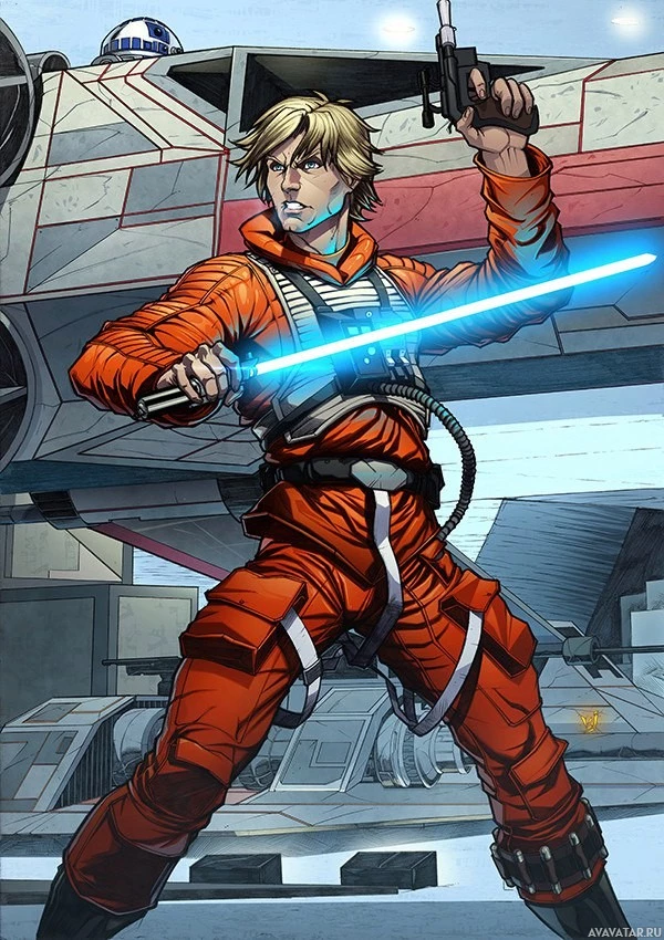 flight suit, which is consistent with the attire of Rebel pilots or those associated with X-wing squadrons in Star Wars. The background suggests