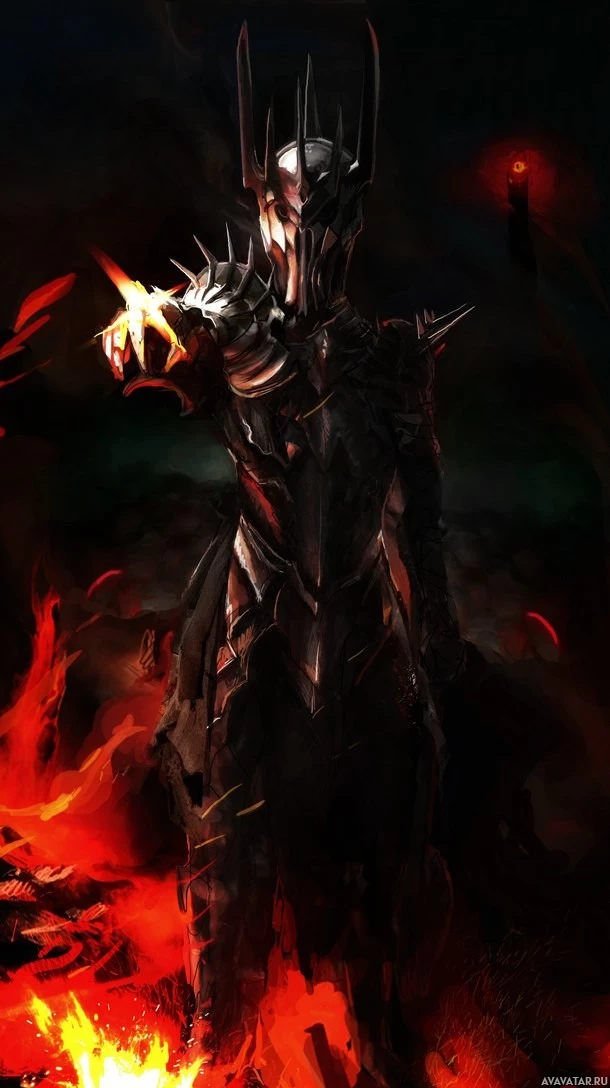 a fantasy character that appears to be Sauron, the primary antagonist from J.R.R. Tolkien's Middle-earth series, particularly as portrayed in