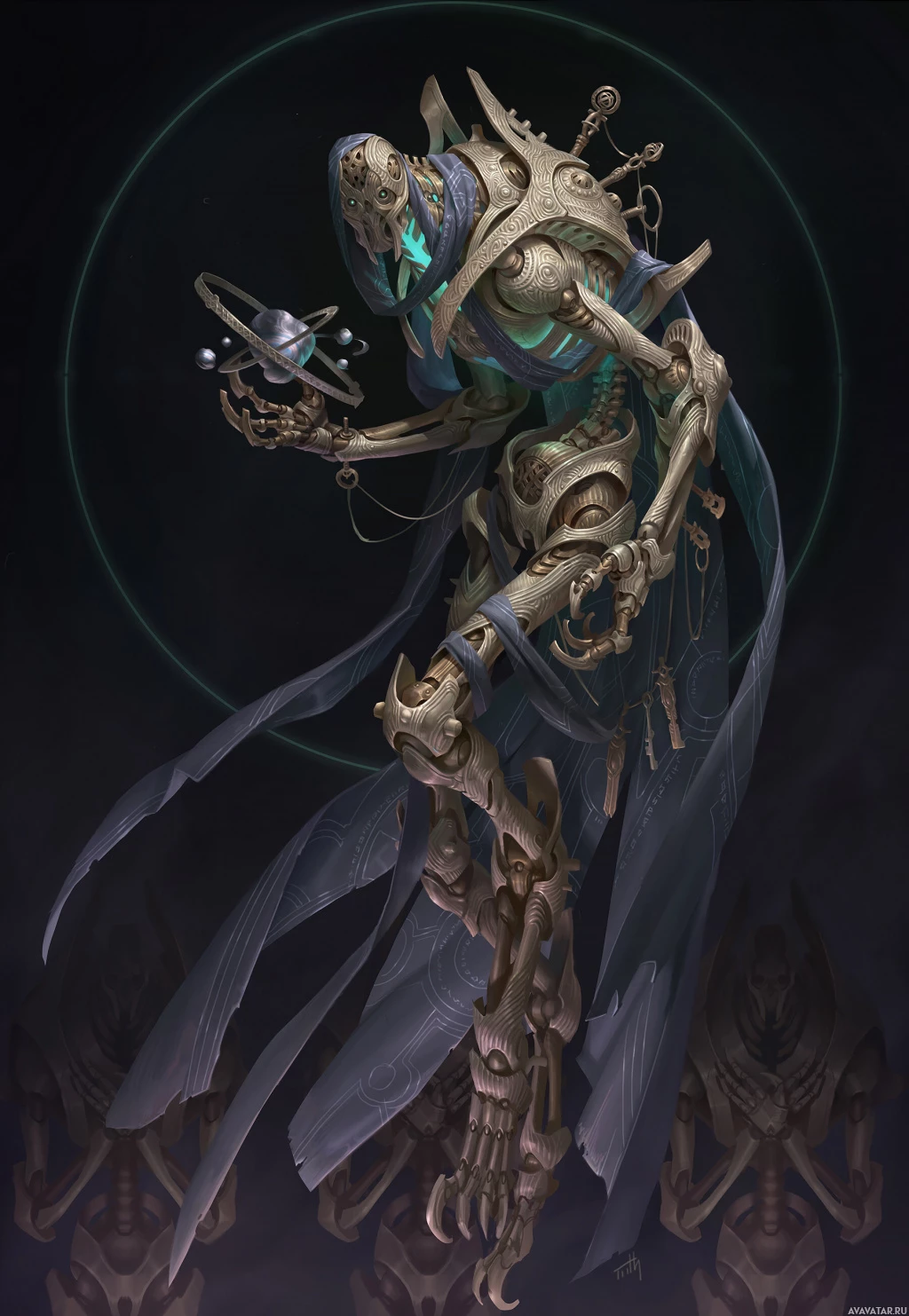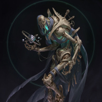 a humanoid robot or an android with a somewhat gothic or fantasy-inspired design. The character is depicted in