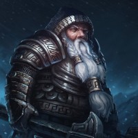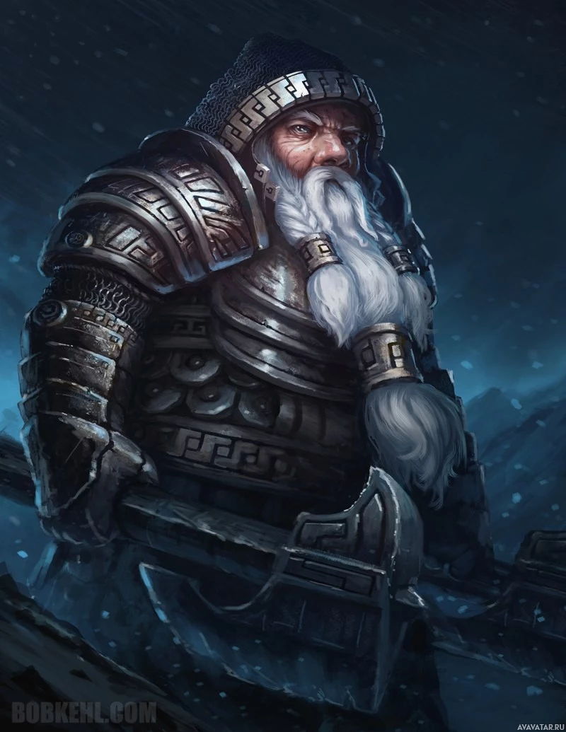 The image depicts a fantasy-style character who appears to be a dwarf. The dwarf is portrayed with a beard and mustache, wearing armor that looks like it could be of Norse or