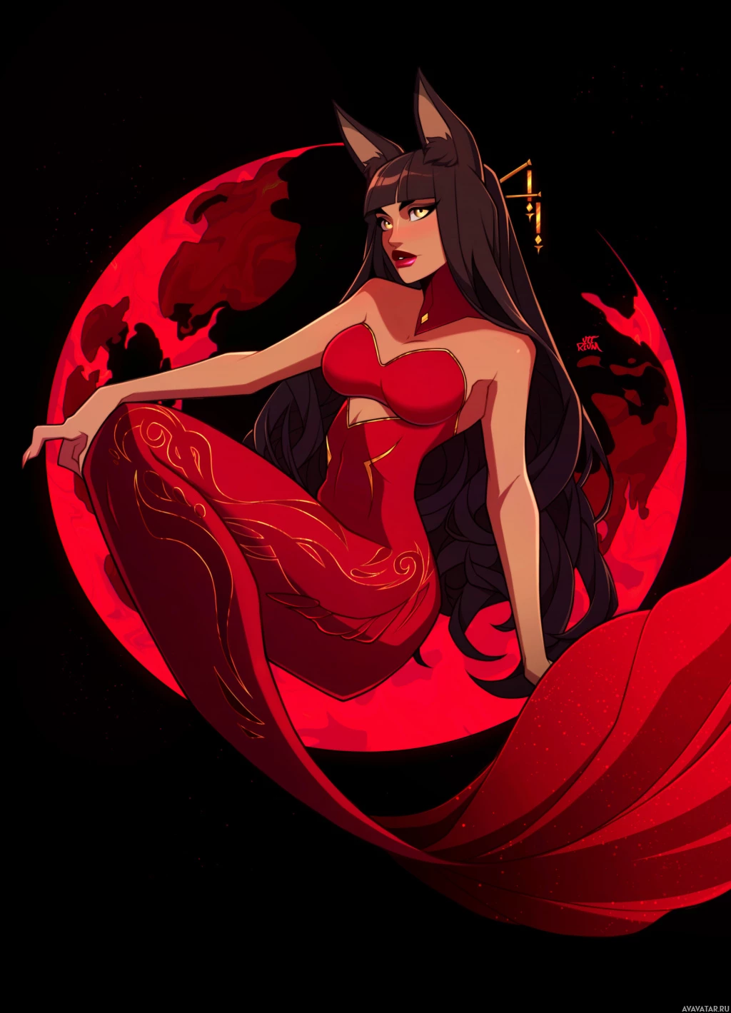 a red dress that suggests a fantasy or mythological context, possibly inspired by East Asian folklore where mermaids are known as "nixi" or other similar names. The background includes