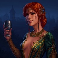 the video game "The Witcher 3: Wild Hunt." The character depicted is Triss Merigold, portrayed with
