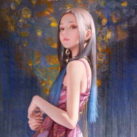 an introspective expression on her face. The overall mood of the artwork seems to convey