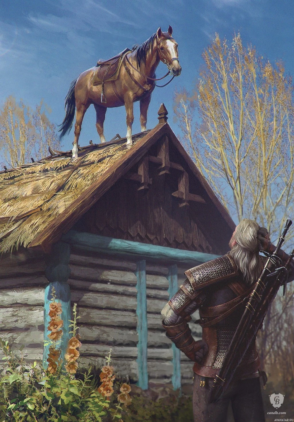 the video game "The Witcher 3: Wild Hunt." In the foreground, there is