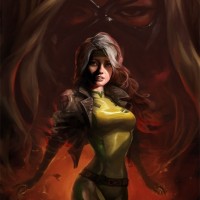 female characters from comic books. On the left side, there is a character wearing a yellow top with a red emblem and a mask over her eyes; she has short