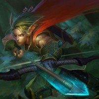 the fantasy genre. This character is an elf, as indicated by their pointed ears and the presence of