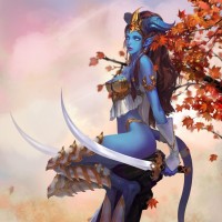 an anthropomorphic character that appears to be a mermaid. She has blue skin, pointed ears, and is wearing what seems to be armor with