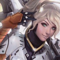 the video game "Overwatch." This character is known as Mercy, and she is depicted wearing her iconic white armor with