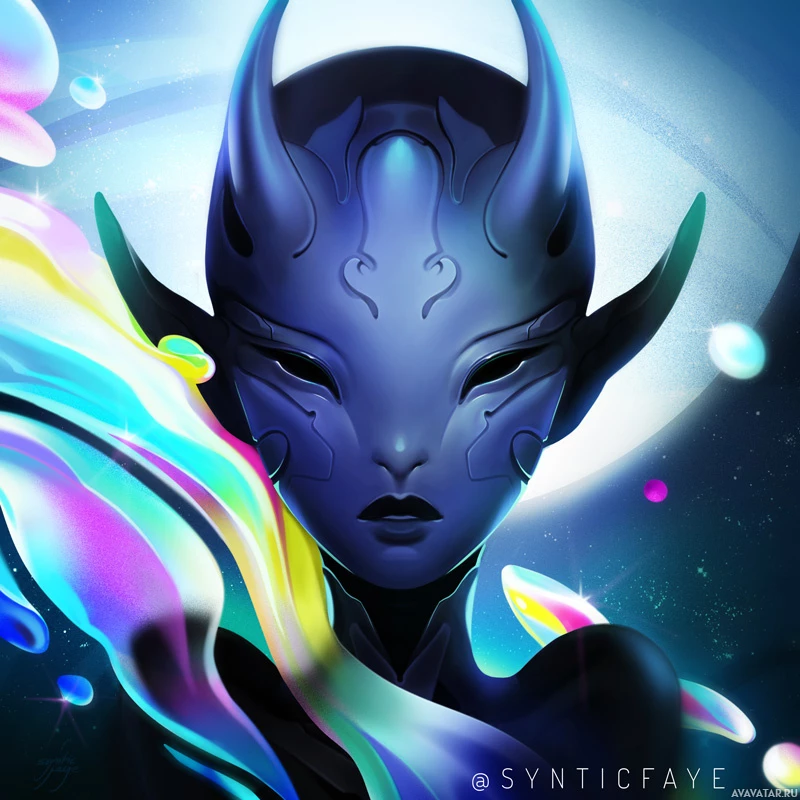 alien races. They have a mask-like face with intricate designs, suggesting a sophisticated culture or