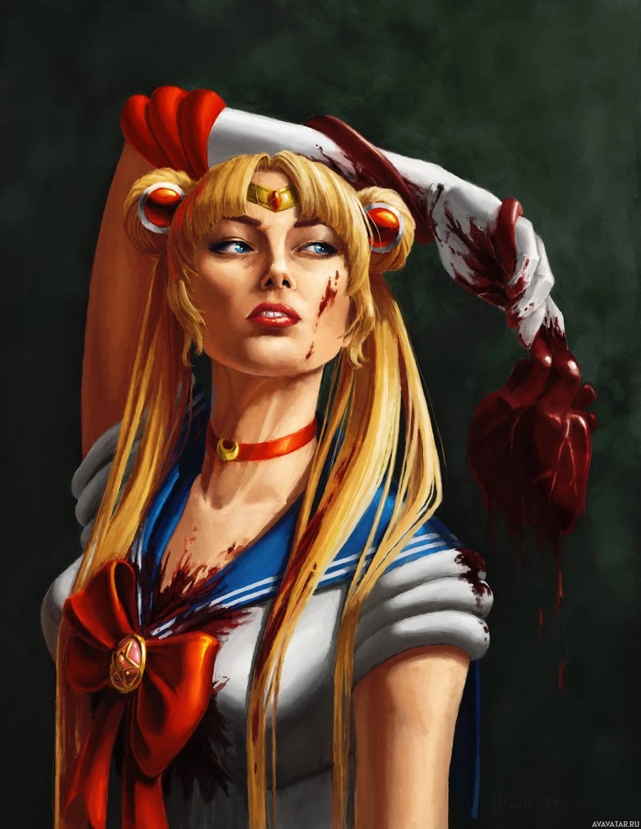 Sailor Moon, a well-known character from the Japanese manga and anime series. She is depicted with her characteristic