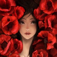 red flowers that might resemble poppies or a similar type of bloom. The style of the image suggests it could be an illustration rather than a photograph.