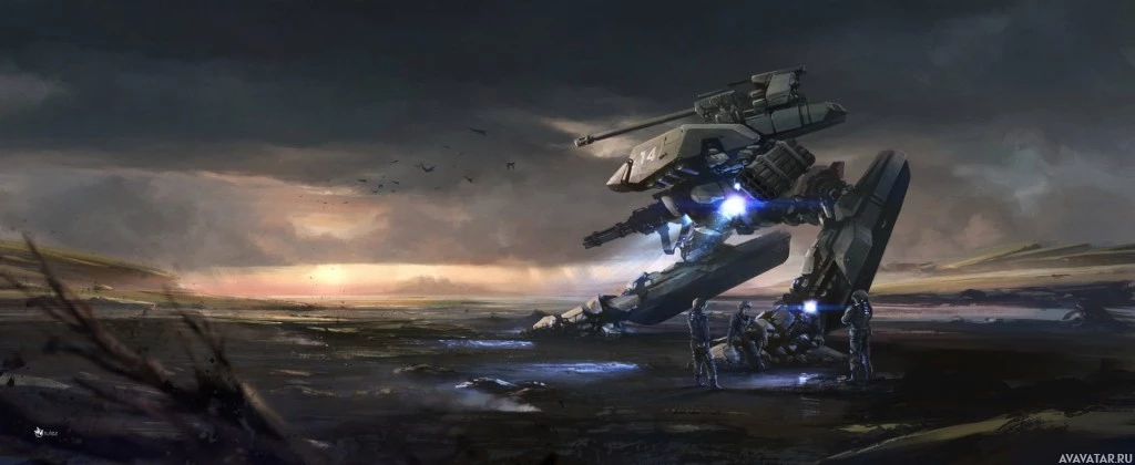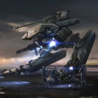 advanced technology. This image may be related to themes commonly found in science fiction, such as post-apocalyptic worlds, advanced robotics, and possibly war or conflict involving these mechanical entities.