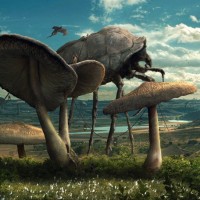 a fantasy landscape that seems to be inspired by the game "The Elder Scrolls." There is an enormous mushroom, which might suggest