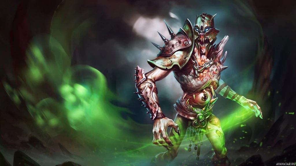 the video game "Dota 2." This is Undying, known for his powerful health regeneration and ability to summon skeletons. He is shown in an aggressive pose with glowing