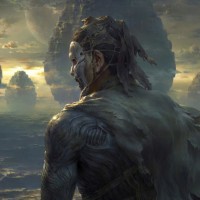an air of mystery. Behind the character are large, ominous-looking stones that could represent some sort of monument or landmark. The setting appears to be at dusk or dawn due to