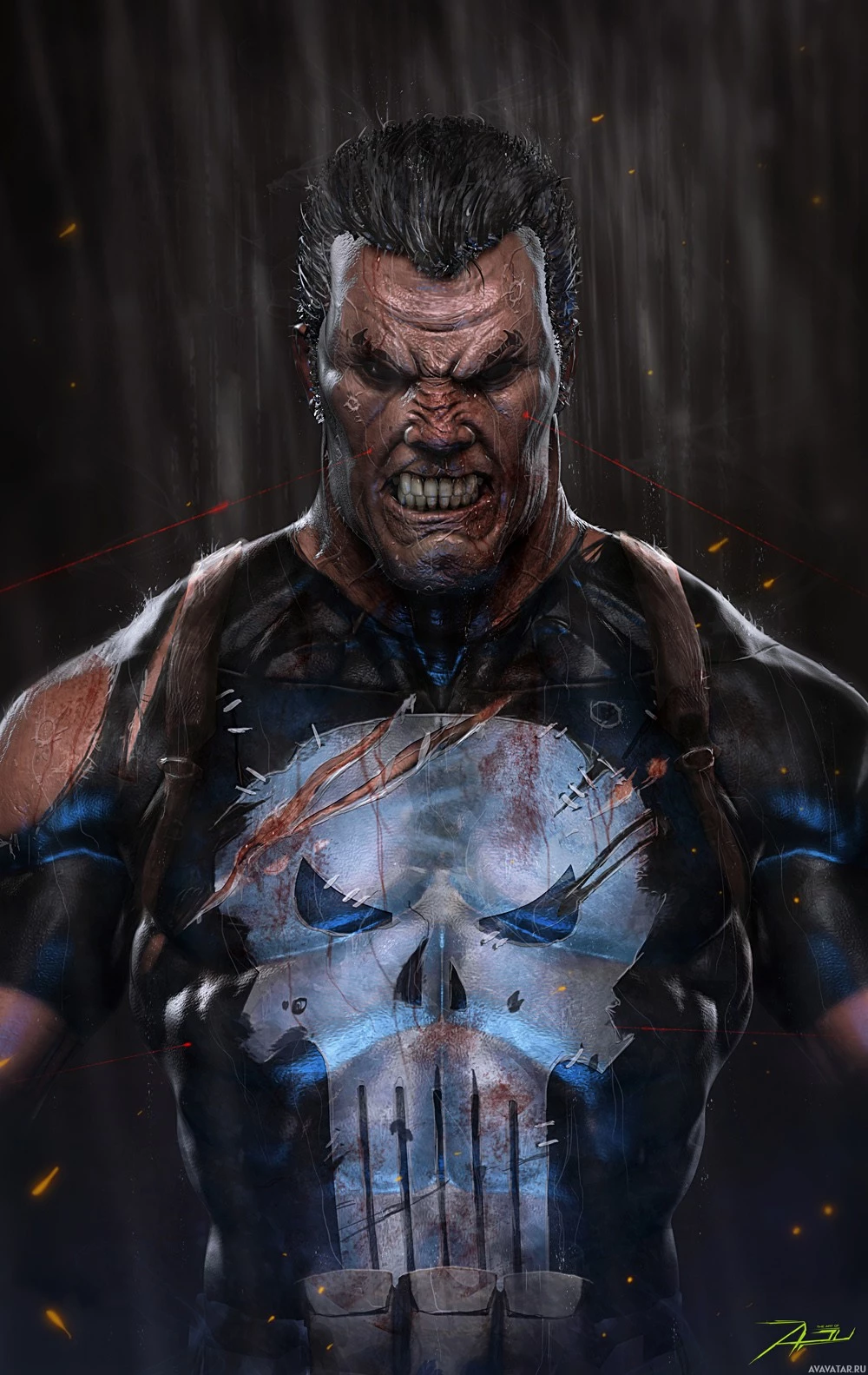 The image features a character dressed as the Punisher, known for his role in