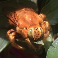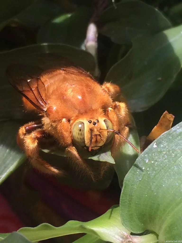 The image shows a bee, which is an insect. The bee appears to be resting or perhaps preparing to fly on some