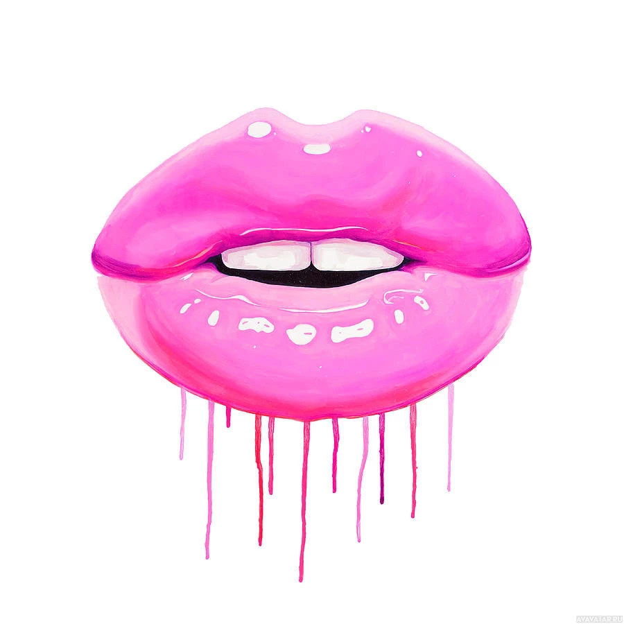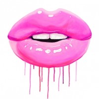 a glossy finish, and there are small drops or dots around the lower edge of the lip, possibly indicating that something has been smeared on it. This could be interpreted as an artistic representation or stylized version of a woman's lips.