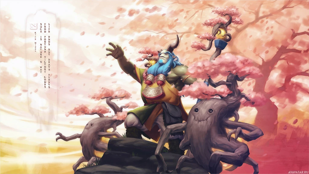 the video game Dota 2. In the center of the image is Nature's Prophet, a character known for their animal-like appearance and