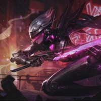 battle scene with blurred figures and explosions in the background. The character's armor and gear suggest a high-tech or cyberpunk theme, which is consistent with science