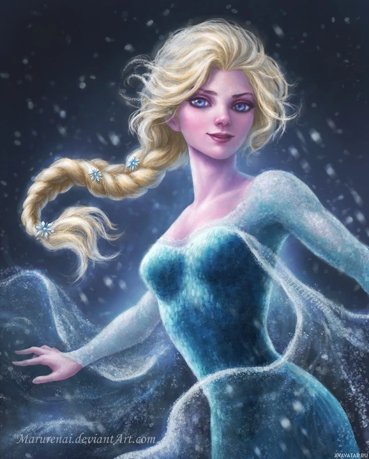 The image features an animated depiction of Elsa, a character from the Disney movie "Frozen." She is portrayed with