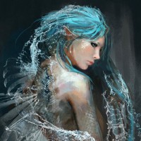 body of a human and the lower body of a fish. The artwork has a dark or moody atmosphere, with a hint of motion as if the character is in mid-movement.