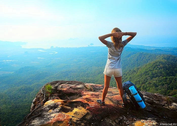 an adventure trip. The scenery around her indicates