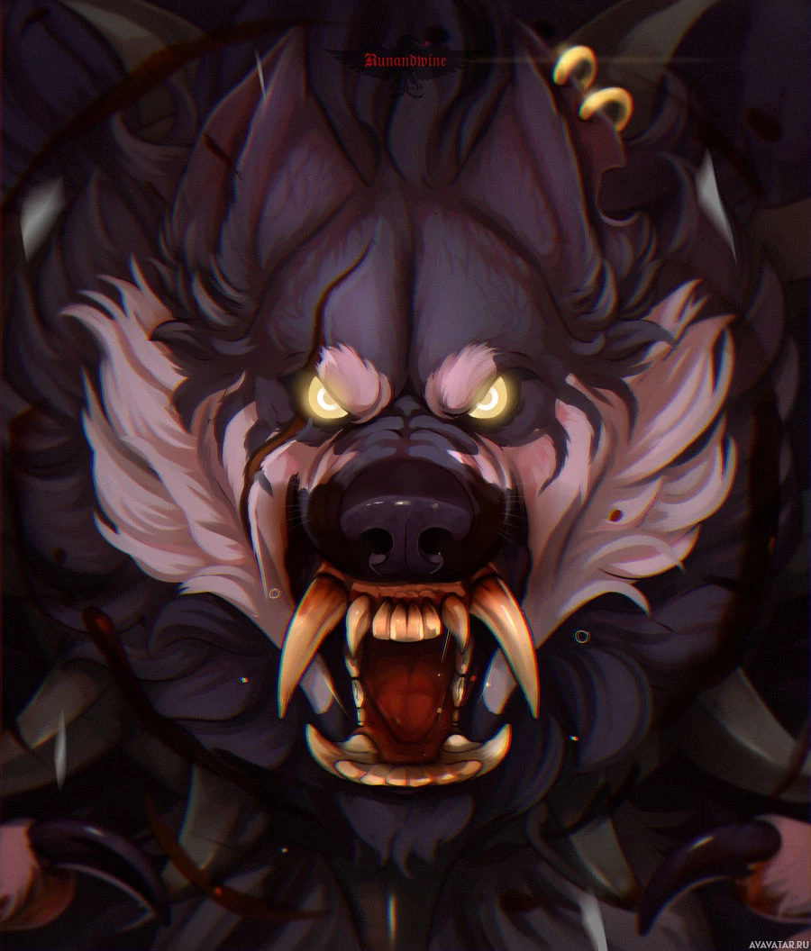 glowing eyes, which are common traits associated with wolves or werewolves in various mythological stories and fantasy genres. It appears to be a detailed digital