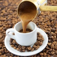dark color which indicates that it might be strong or have more caffeine content. The image captures the moment before