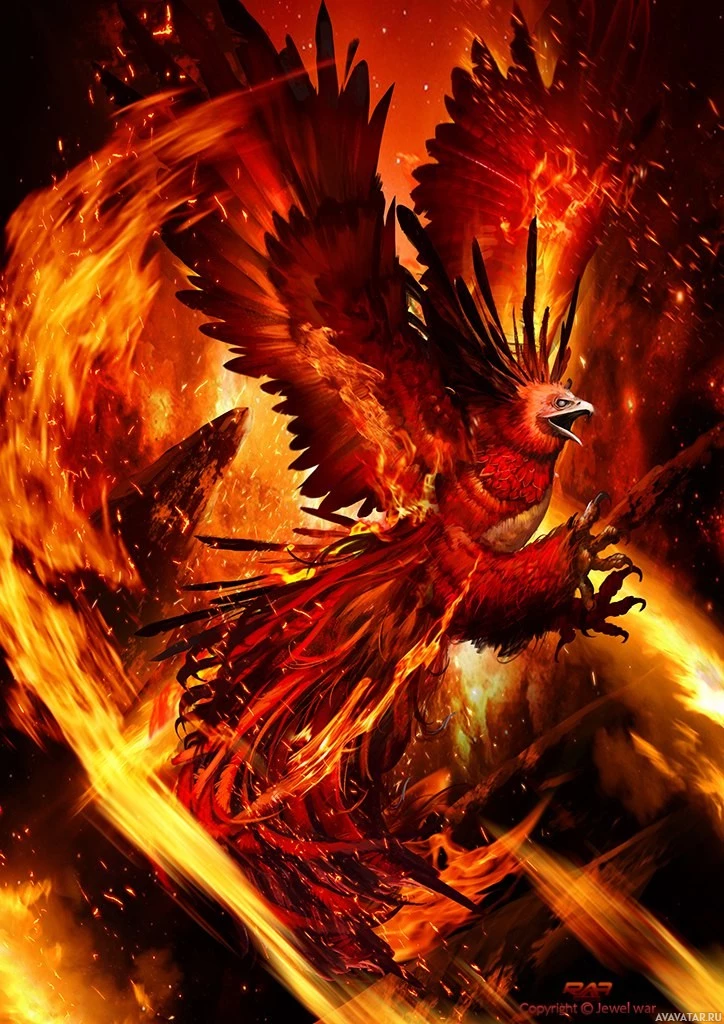 The image depicts a phoenix,