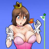 Princess Peach from the Mario series. She appears to be standing in front of a brick wall that looks like the entrance to a level in