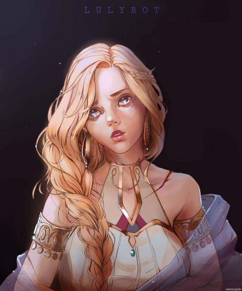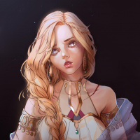 blonde hair. She is depicted wearing what appears to be armor or an ornate garment, suggesting she could be a character from