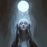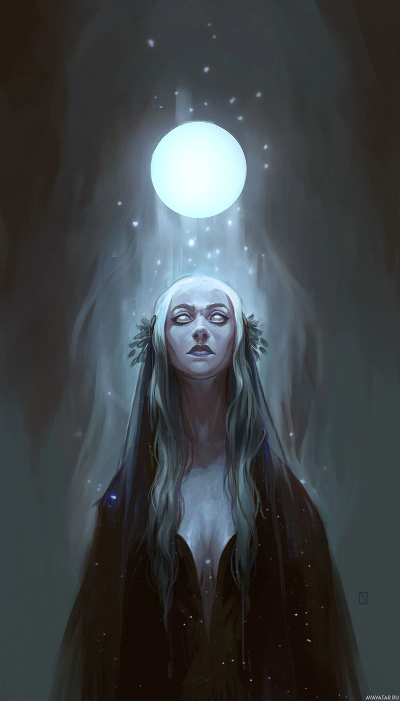 the mystical atmosphere of the scene. The overall mood of the artwork is mysterious and introspective.
