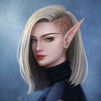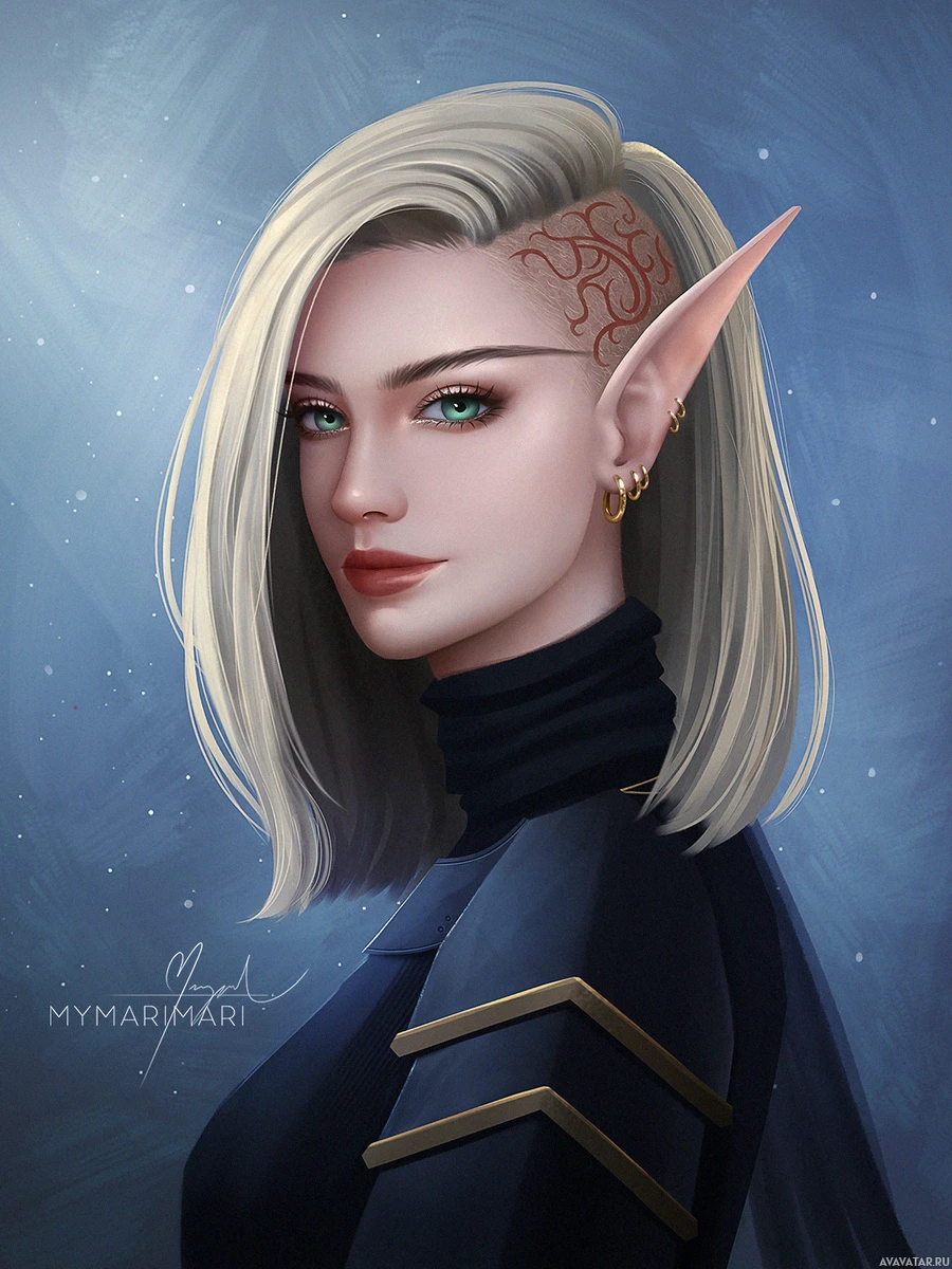 pointed ears, resembling an elf from fantasy lore. The character has silver hair and blue eyes, which are common traits for elves in various forms of