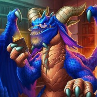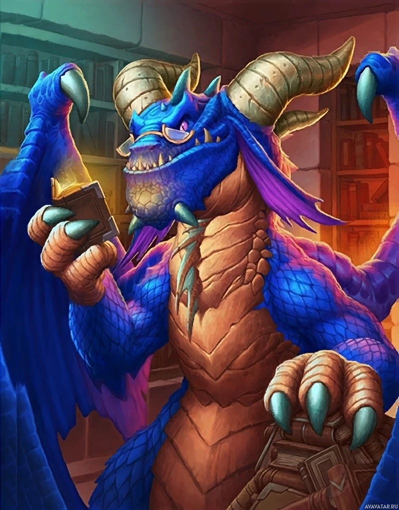 a dragon character. This creature has the traditional dragon appearance with scales, wings, and horns. It is depicted in a pose that suggests it is engaged in an activity, possibly reading or writing, as indicated by the book-like object held in its hand. The background gives the impression of a cozy, warm setting, possibly a library or