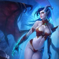 The image depicts a character from the game Dota 2, known as Queen of Pain. She is shown in her classic artistic form with fantastical elements such as dragon wings and a demonic appearance. This character is known for her role in the game as a powerful melee fighter.