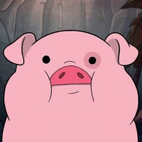 an animated character that appears to be Pig from the animated television series "Gravity Falls." Pig is known for his pink, round body with