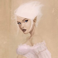 white hair. The artwork appears to be done in a realistic style with