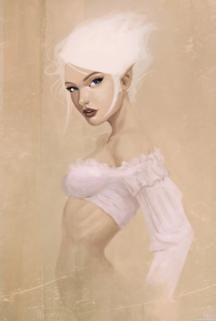 soft shading that gives the character a lifelike appearance. The elf is depicted wearing a ruffled garment, which suggests a level of sophistication or magical attire fitting for