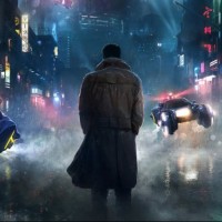 a dark outfit and a trench coat, standing behind what appears to be a large display screen. The individual seems to be observing or interacting with something on the screen, possibly related to