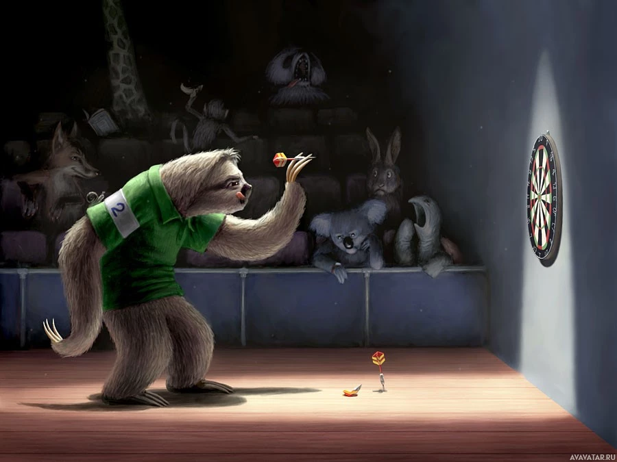 whimsical effect, as it's unusual for a sloth to participate in a game of darts.