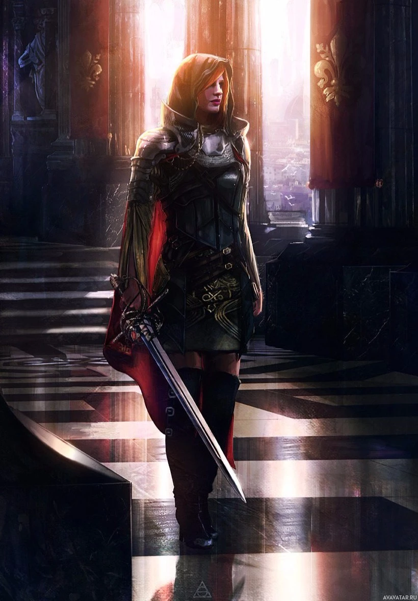 a fantasy setting, possibly inspired by historical or mythological themes. The use of lighting and shadows creates
