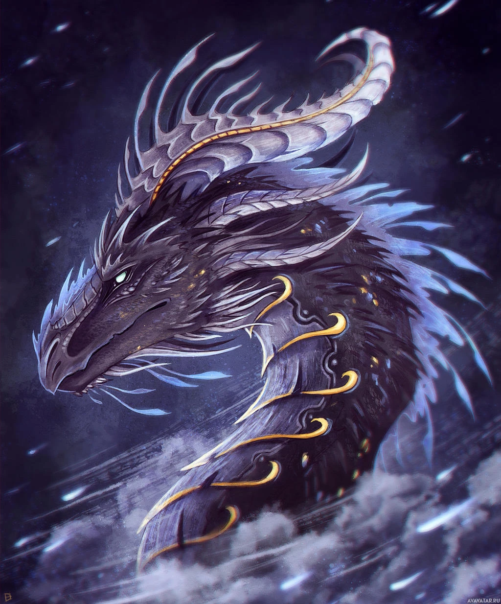 an intense expression, possibly roaring or breathing out smoke from its mouth. The background suggests it might be a stormy