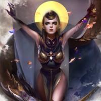 a fantasy character, a woman, dressed in armor that suggests she might be a warrior or an adventurer. She is depicted with