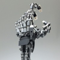 Lego bricks. It appears to be a creative and intricate build, possibly inspired by the design of humanoid robots or figures that often appear in movies and