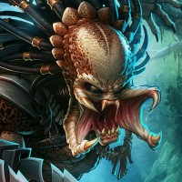 Картинка показывает анимированного или иллюстрированного персонажа, который напоминает Хищника из одноименного фильма. В нем есть человекоподобное существо с мускулистым телом, носящее передовую броню и держащее большое оружие. Сцена выглядит как джунгли, что согласуется с местами, показанными в серии фильмов.