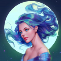 a full moon, suggesting that the scene takes place at night. The overall style of the illustration is soft and ethereal, with a fantasy or anime-inspired design quality.