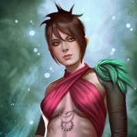 a playable character known for her role in the story. The artwork is detailed and gives the impression that she might have some sort of magical or mystical abilities given the aura around her hand. Her attire is styled with elements that suggest a fantasy or supernatural theme consistent with the game's setting.