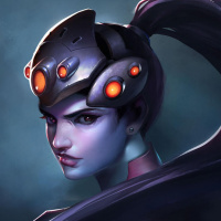 dark hair styled in a long braid that extends behind her. Widowmaker's expression is serious as she looks directly at the viewer, giving off